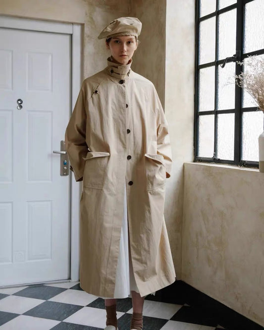 23秋冬 宽松插肩袖侧开叉风衣