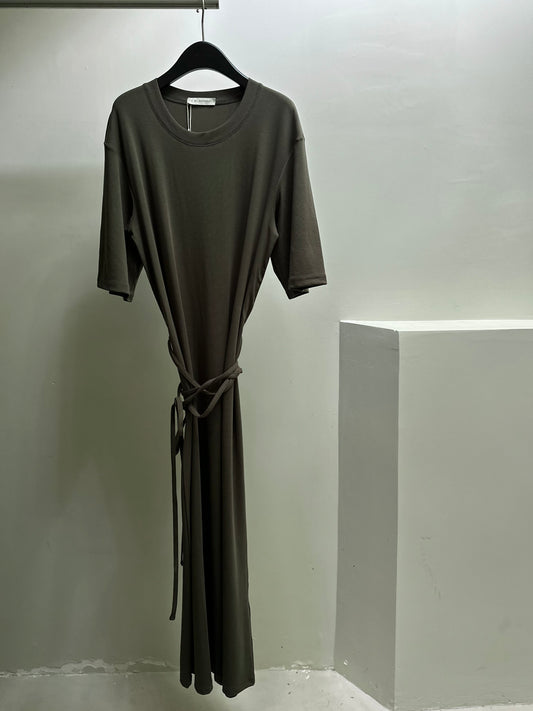 25春夏 纯棉中袖圆领系带T恤连衣裙