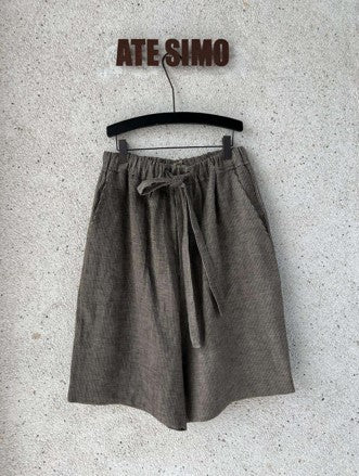 25春夏 冷染苎麻浅褐色条纹宽松抽绳短裤
