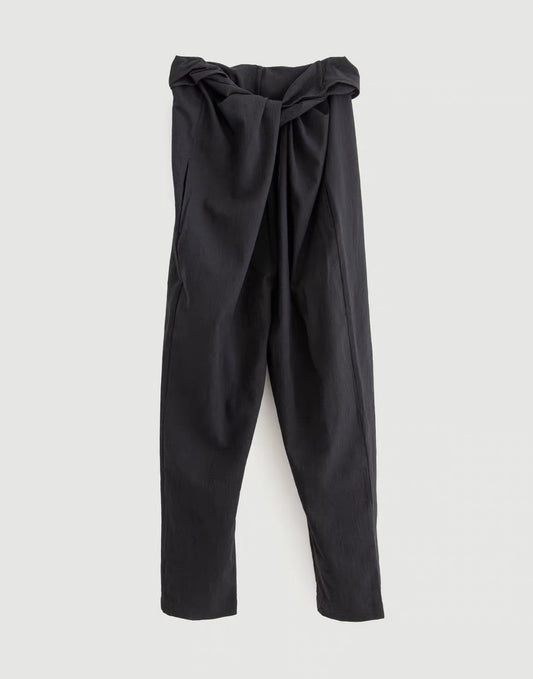 25春夏 水洗丝棉黑色多褶阔腿长裤