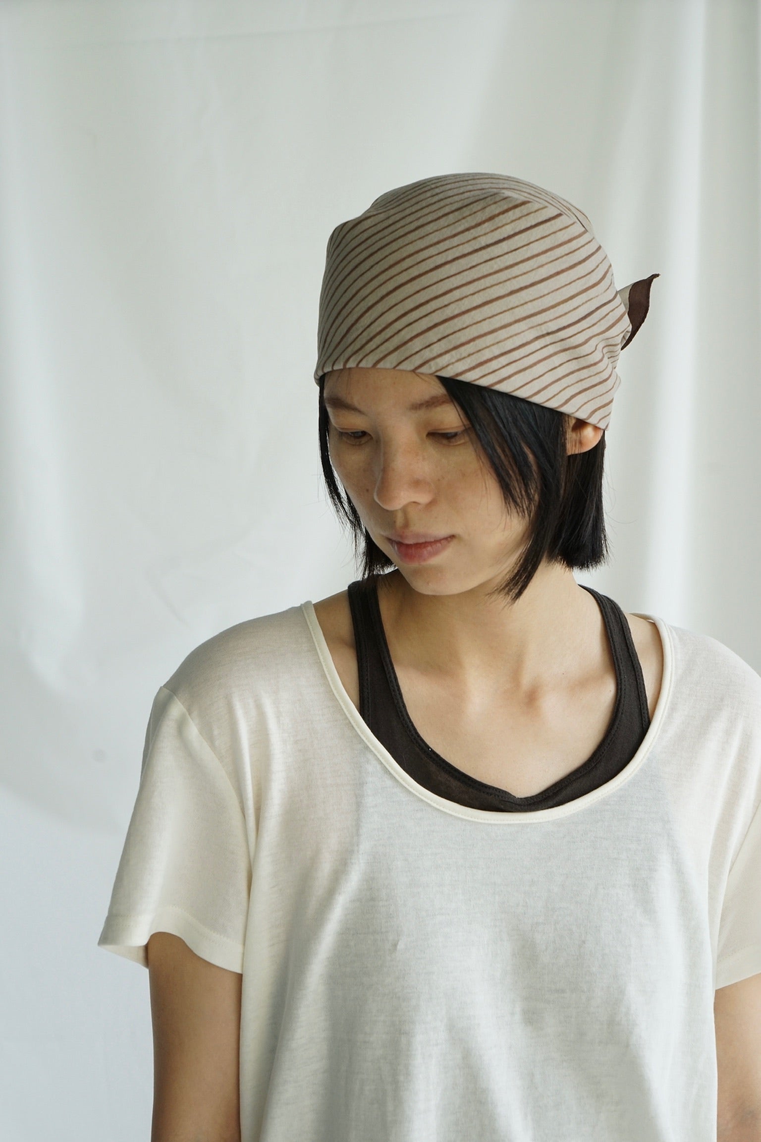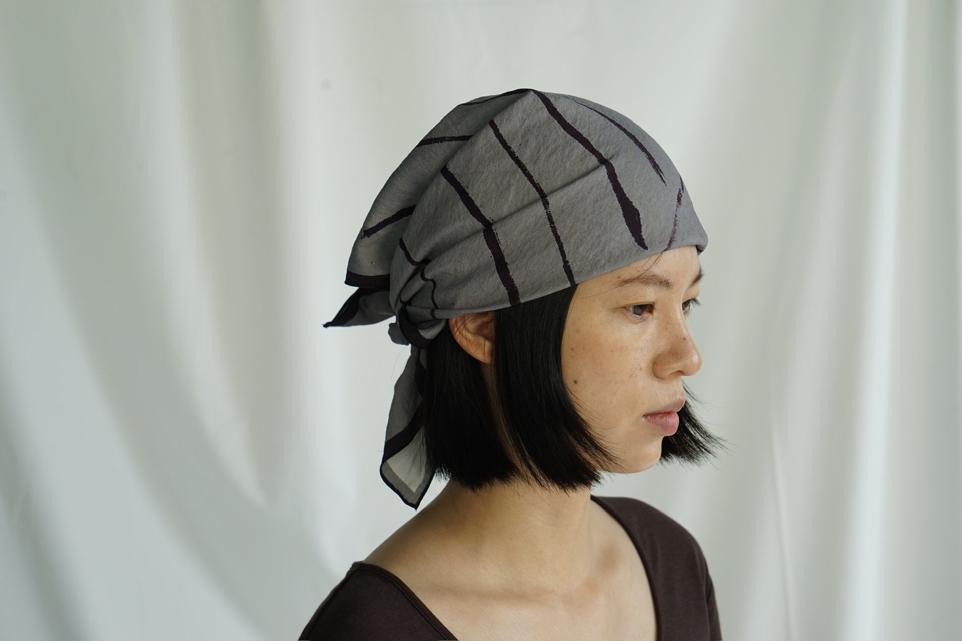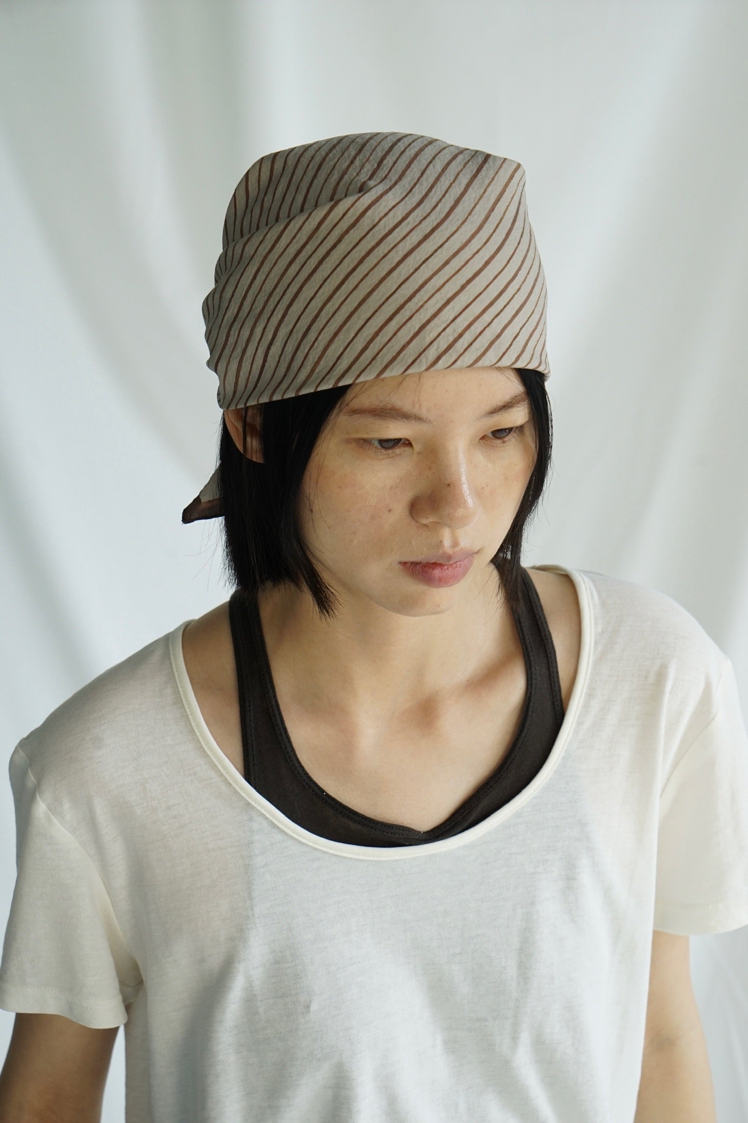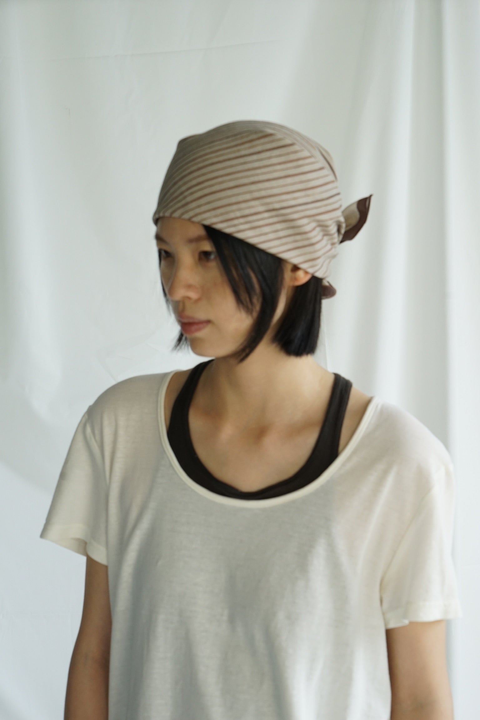 真丝不规则条纹法式包头巾方巾