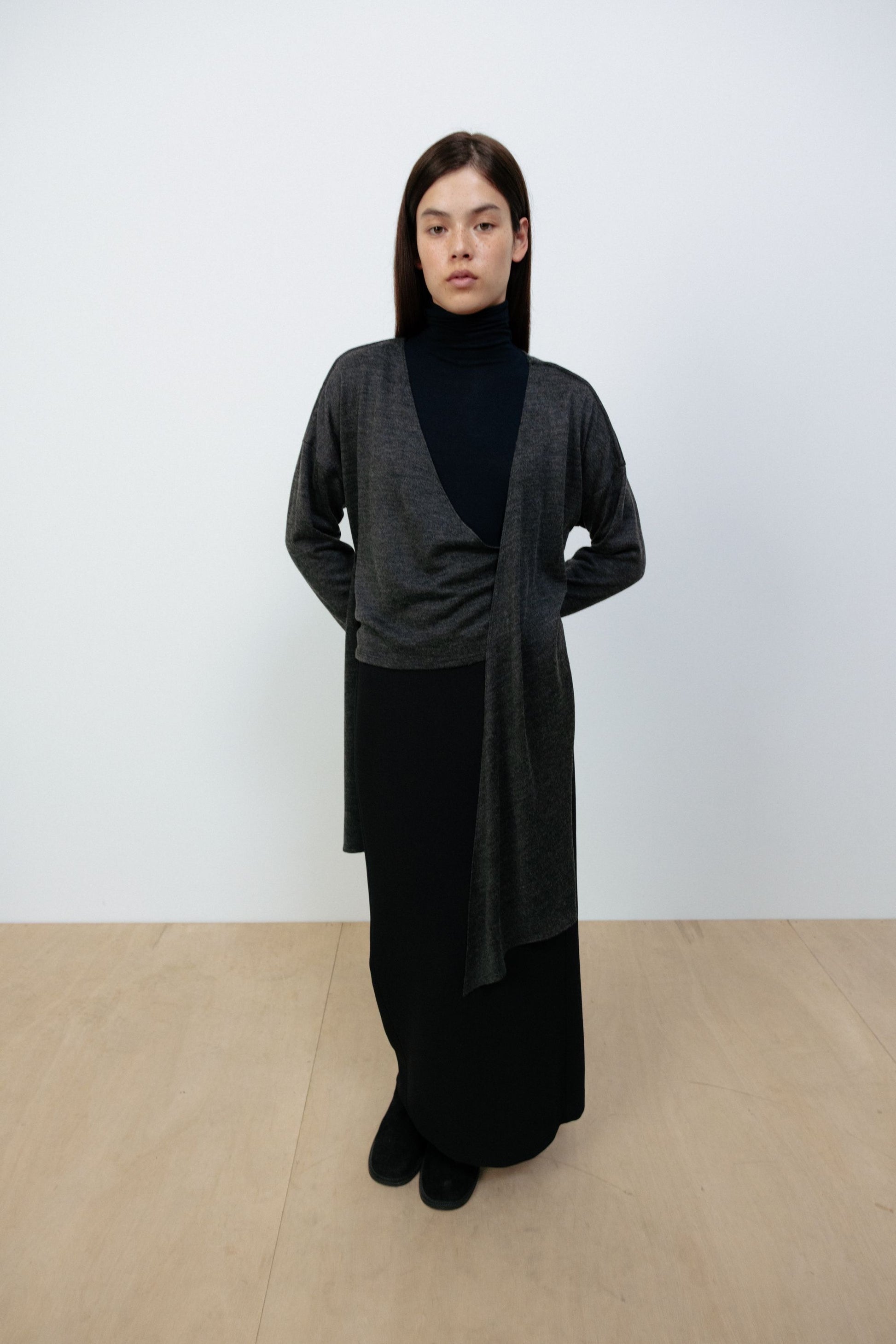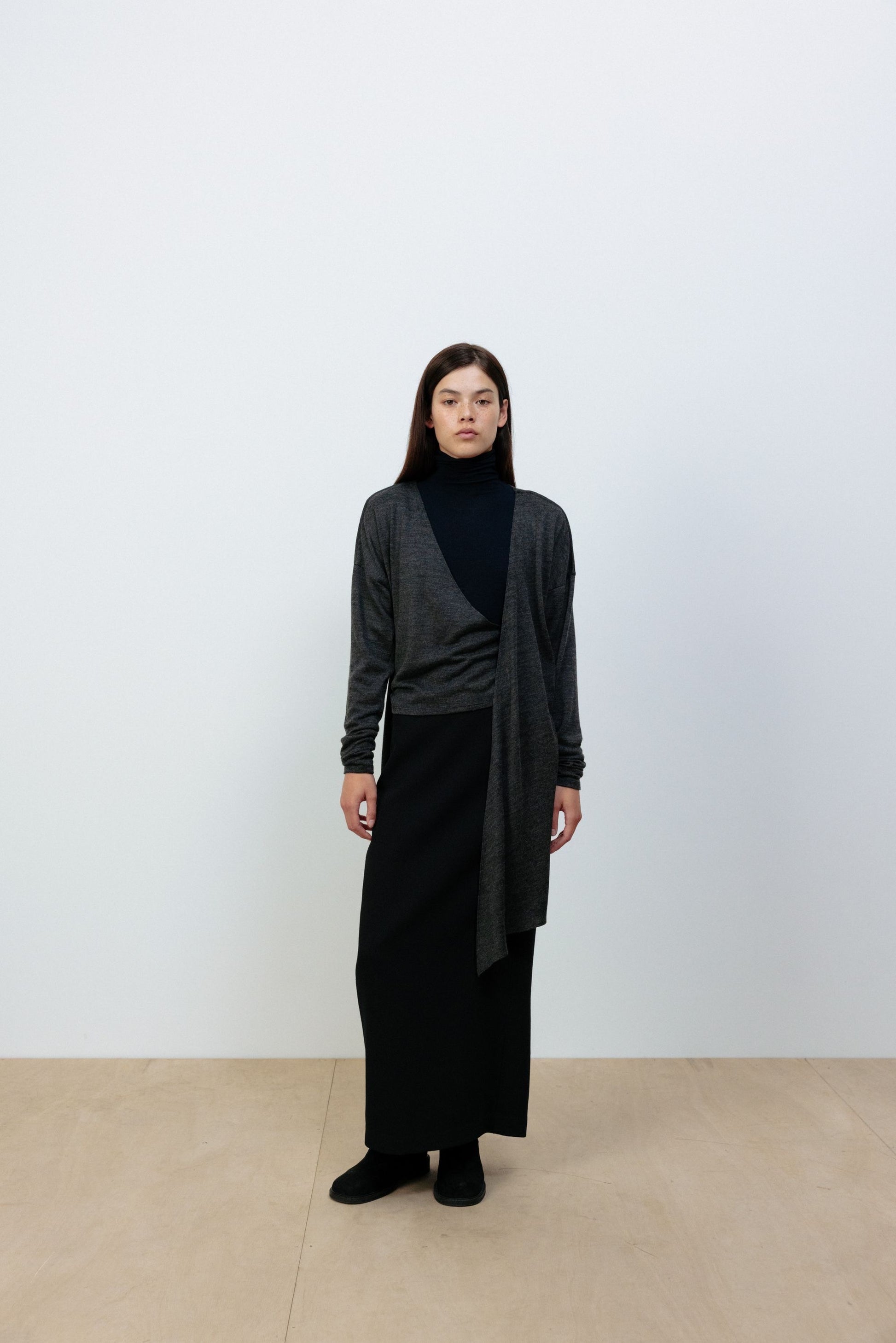 24早秋 WOOL-BLEND FRONT TIE SHIRT