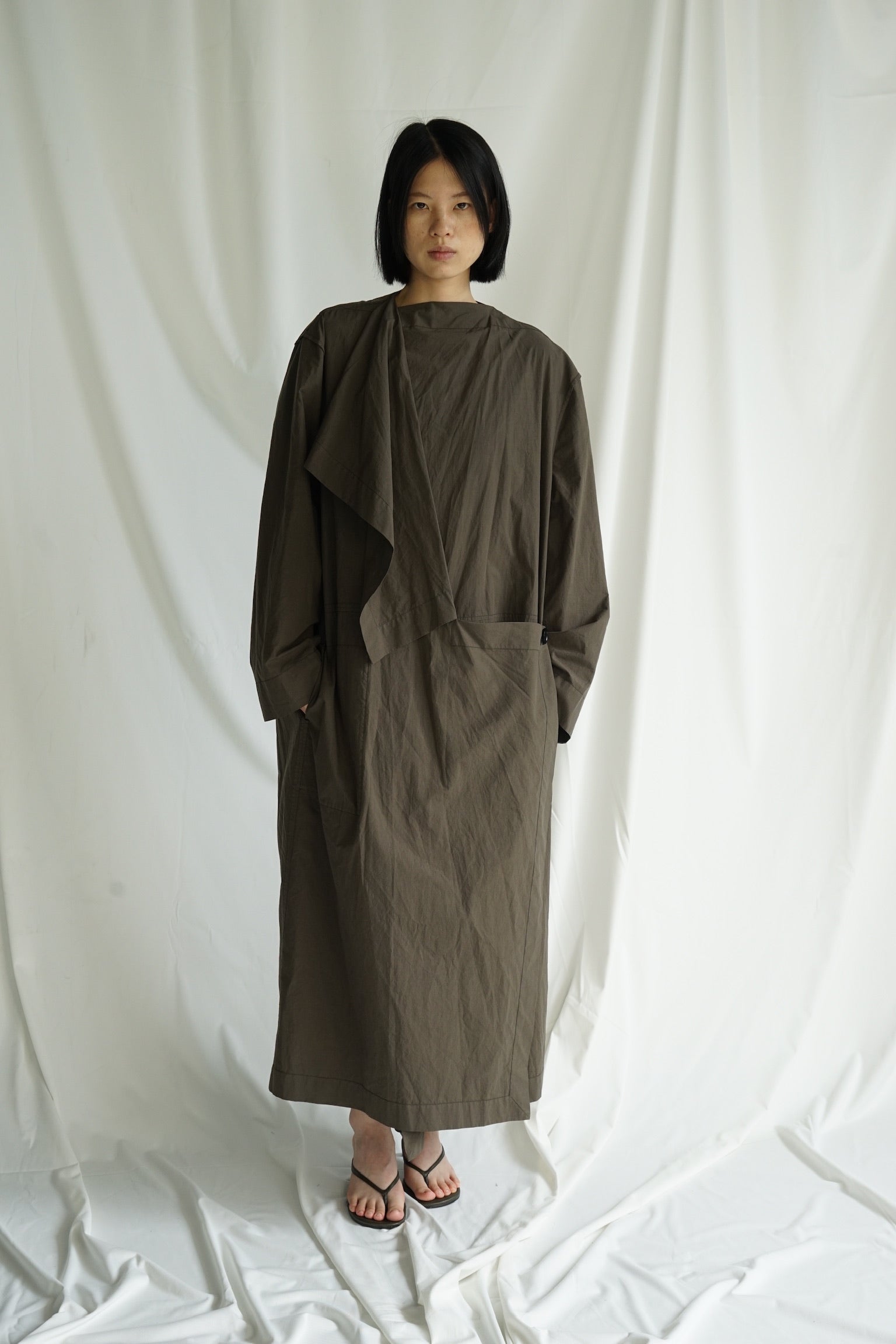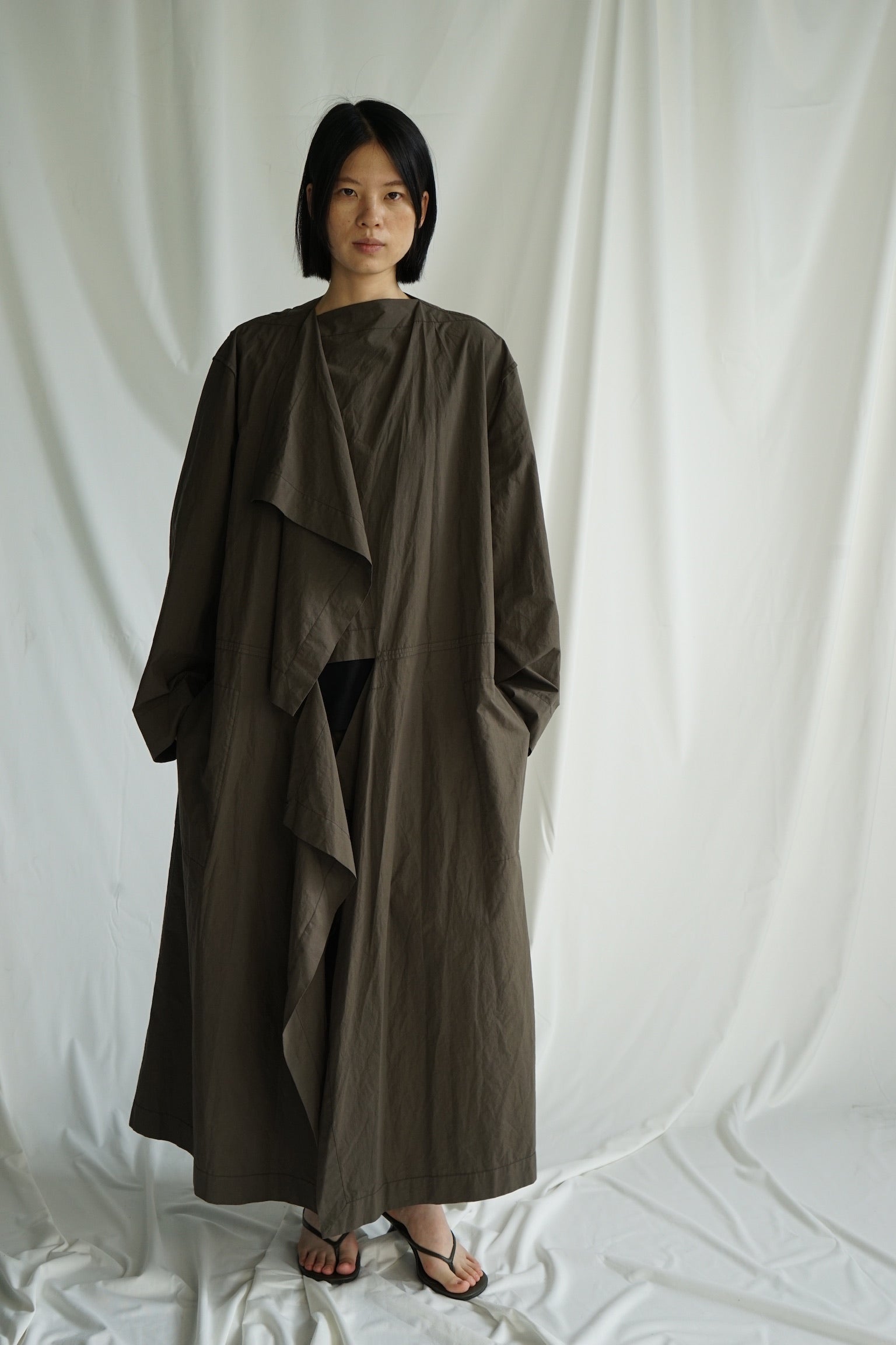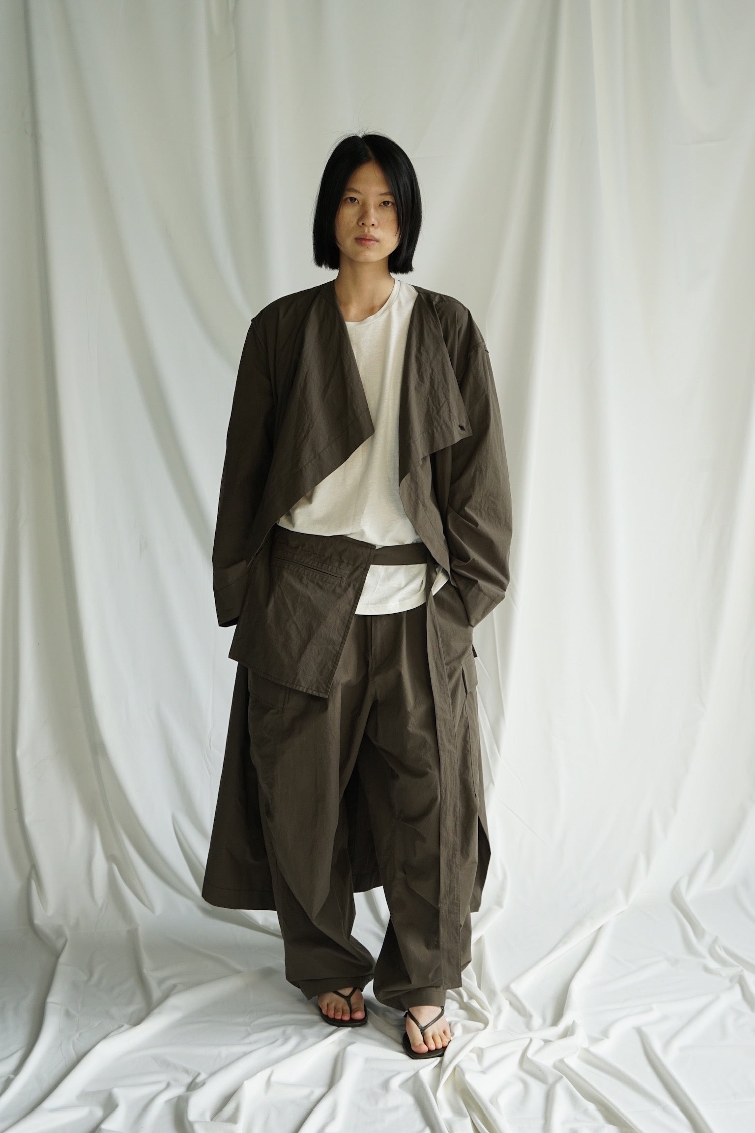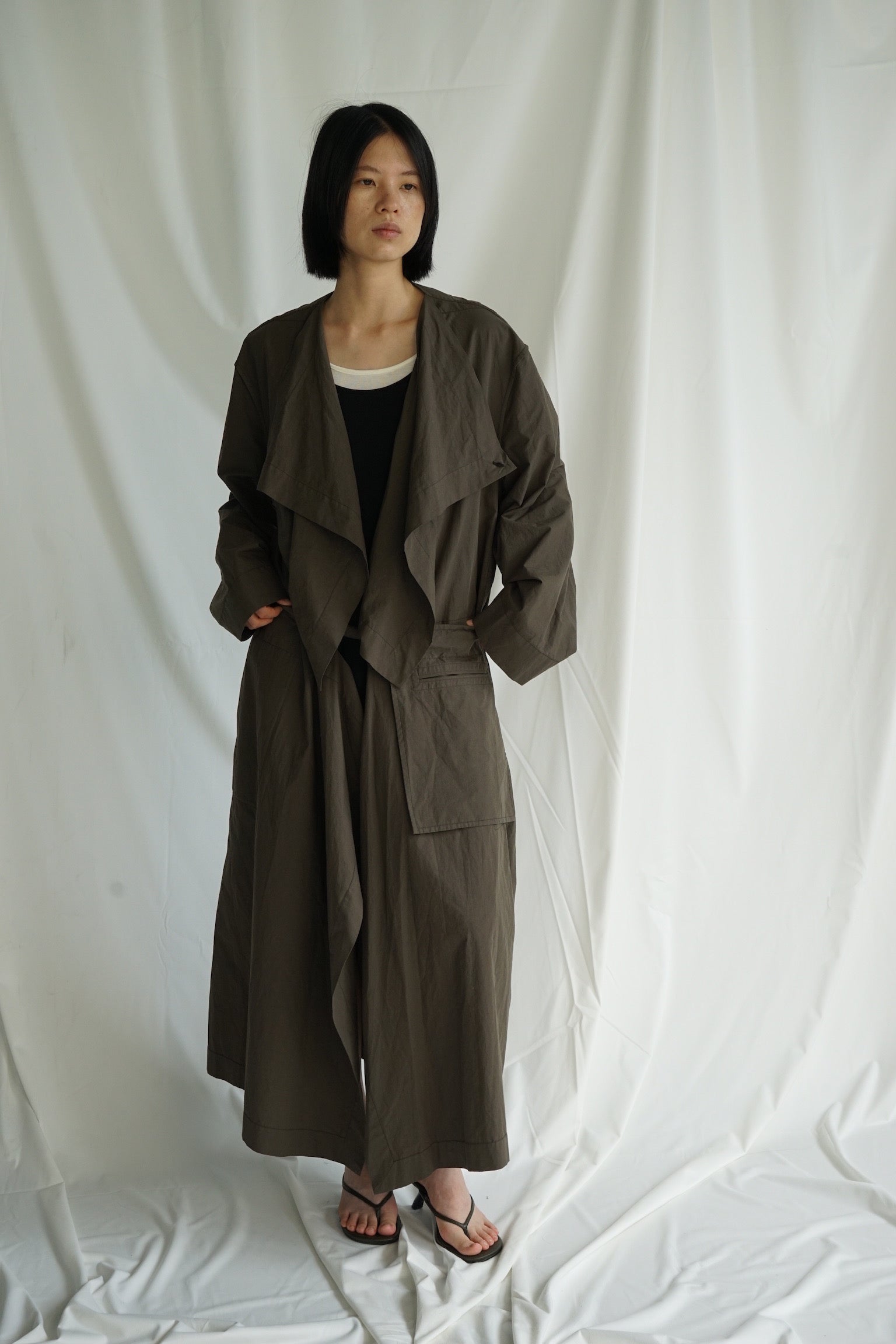 25早秋 纯棉荡领挎包工装风衣