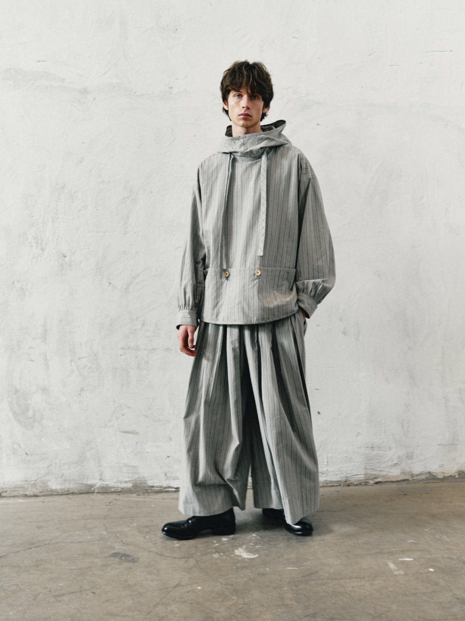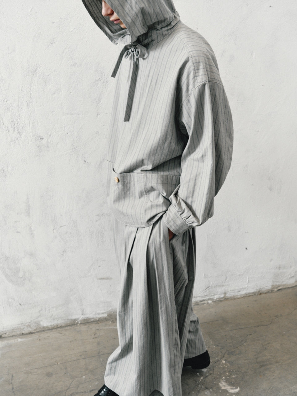 25春夏 冷染丝棉色织条纹连帽多袋外套