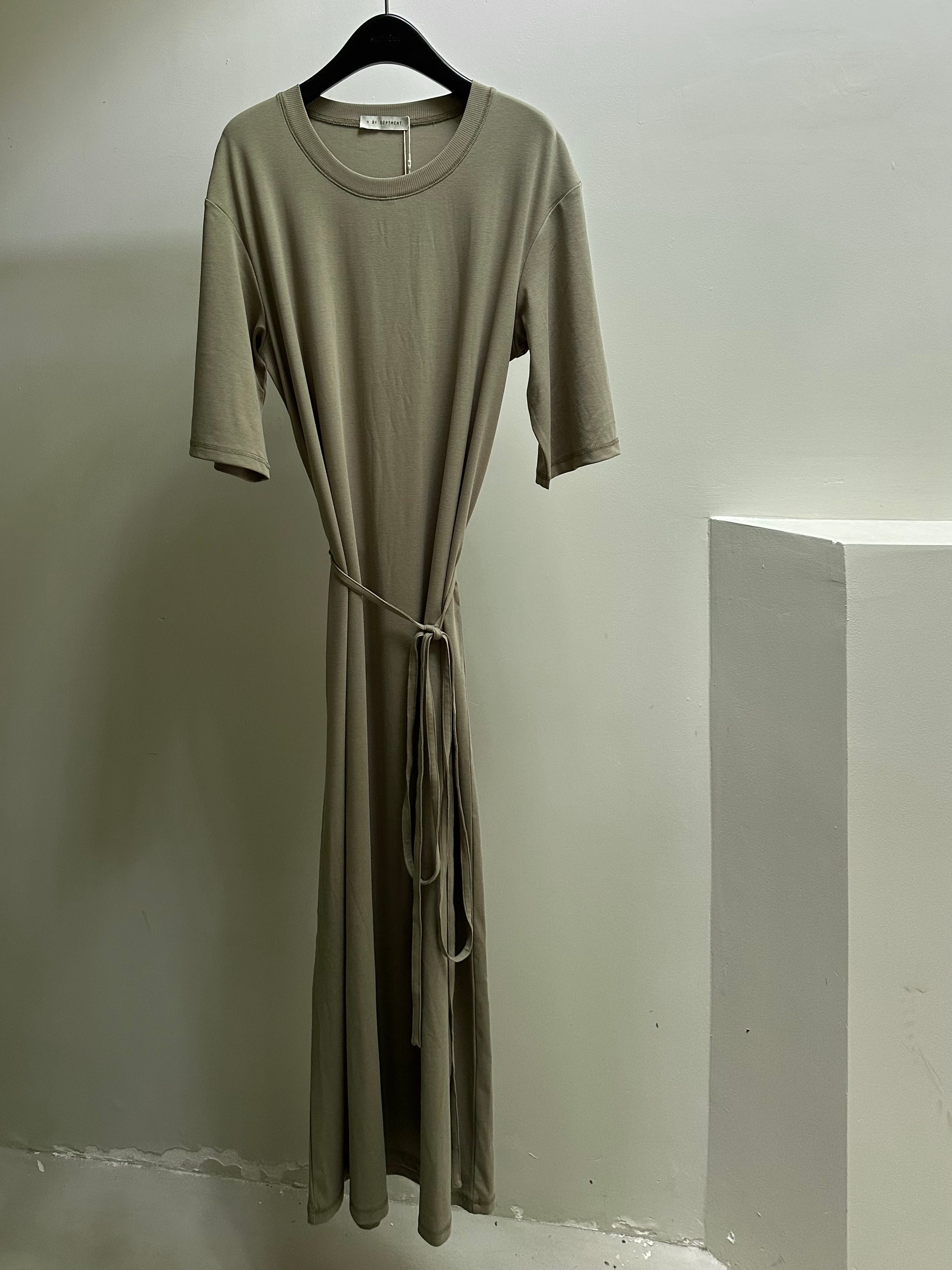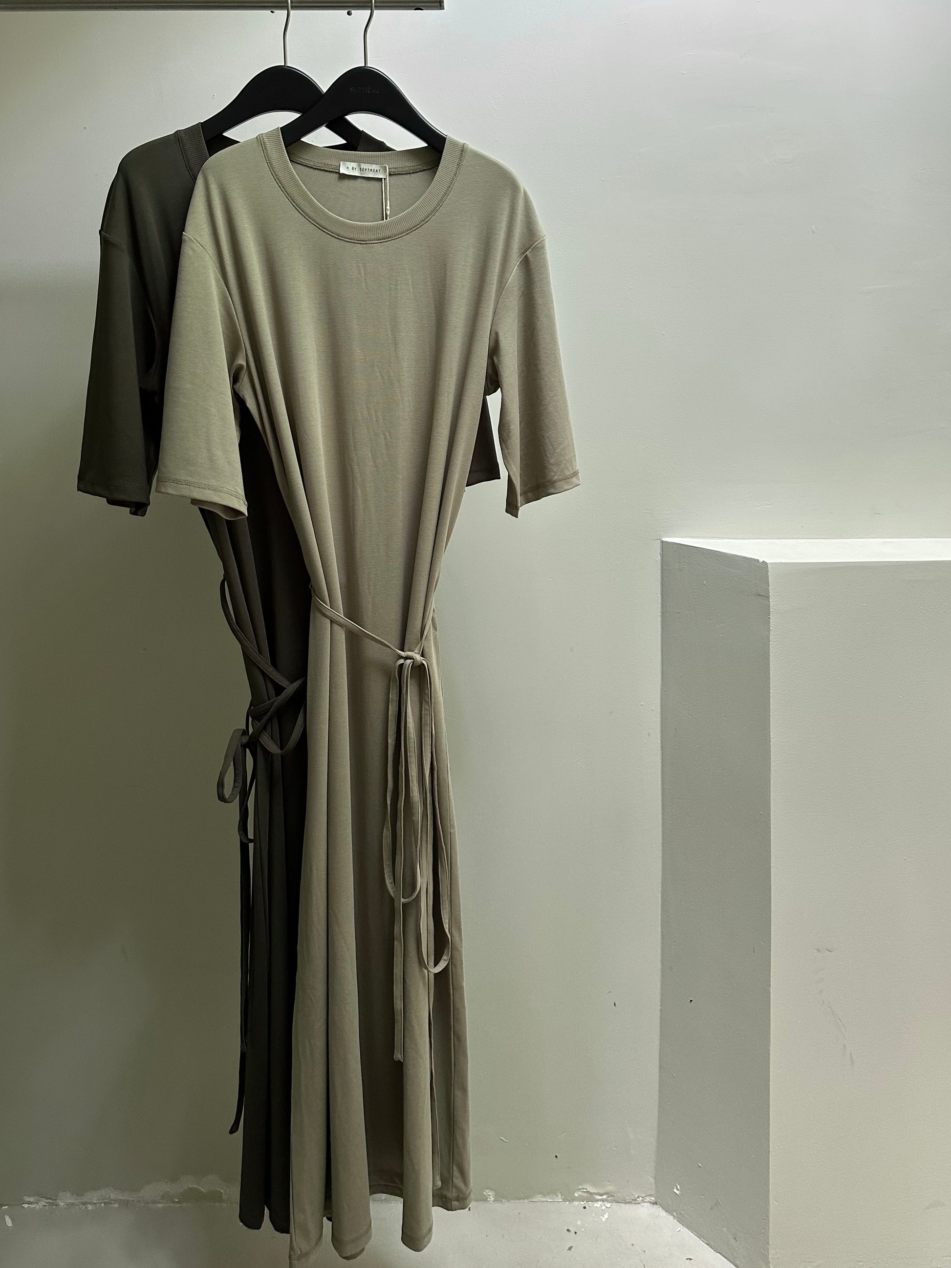 25春夏 纯棉中袖圆领系带T恤连衣裙
